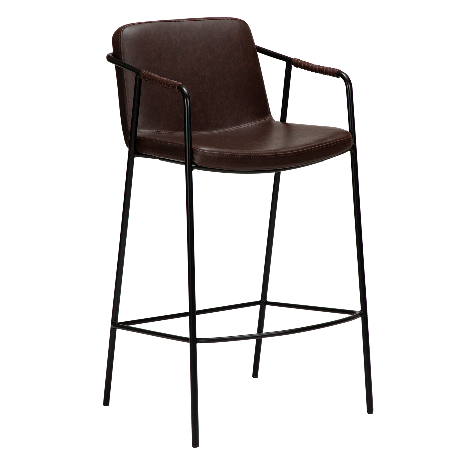 De BOTO balie is een klassiek ontwerp van By Georgsen. De dunne metalen poten die doorlopen in armleuningen wikkelen zich om de achterkant van de zitting. Het kunstleer is om de armleuningen gewikkeld als een decoratief detail dat het ontwerp naar een hoger niveau tilt. De barkruk is een lage barkruk, die past bij de hoogte van het tafelblad. De BOTO-collectie bestaat uit stoelen, barkrukken en loungestoelen.
