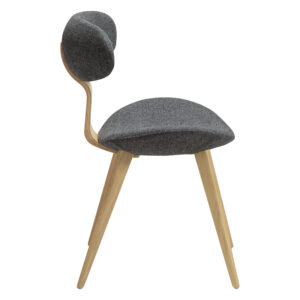 Met een vleugje futuristische elegantie biedt de BUCKLE stoel van Jacob Amtorp een speels ontwerp. De vormgeperste houten ‘golf’ in de rug ondersteunt een gevormde schuimrugleuning die een lichte en luchtige uitstraling geeft. De massief houten poten maken de look compleet van een prachtig vormgegeven ontwerp dat opvalt. BUCKLE is alleen beschikbaar als stoel.